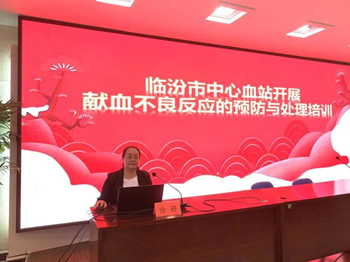 此次培训由体采科主治医师徐静对市中心血站全体干部职工进行授课,徐静从献血不良反应的分类及献血不良反应的处置方面,详细剖析了献血过程中献血反应的常见类型。同时,对我站体采科全体工作人员进行了现场提问,充分阐述了献血不良反应的处置要点和难点。现场采血工作人员积极参与、认真听讲,再次熟悉并掌握了献血不良反应的分类及献血不良反应的处置方法。