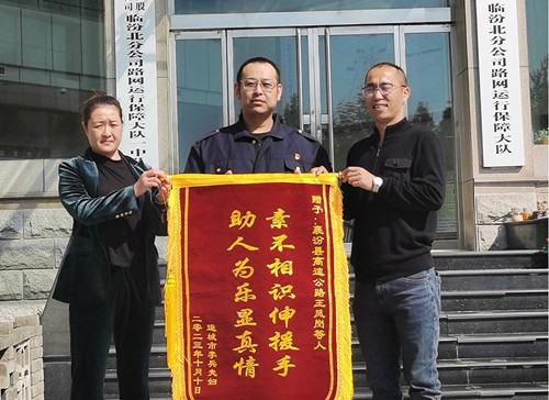 近日,临汾北公司路网运行保障一中队收到一面印有“素不相识伸援手 助人为乐显真情”14个大字的感谢锦旗,表达对路保清障人员出手相助、热情服务的感激之情。