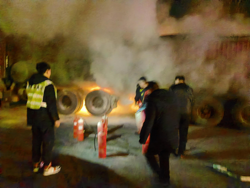 12月18日21:30分,临汾北公司霍州西收费站外广场一辆货车轮胎突发爆炸,瞬间引发大火,火光四溅,情况十分危急。收费值班人员见状,第一时间报告值班站长,随后立即拨打119火警电话后,5名值班人员手提灭火器快速奔赴现场进行灭火,最大程度挽救司乘财产损失。10分钟后消防车及时赶到,在大家的共同处置下,火势很快得到了控制。本次火灾救援过程中,收费站共使用8KG干粉灭火器15具,为消防人员的到来赢得了宝贵时间。