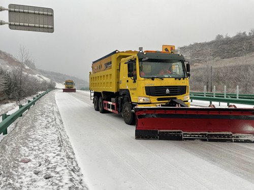 2月20日,面对新一轮降雪天气,临汾北公司迅速启动除雪打冰处置方案和联勤联动机制,按照“即下即清、雪停即通”原则,各养护工区预置除雪物资、除雪设备车辆,采取“人歇机不停”、“三明治”战术,在桥梁、弯道、背阴处、互通立交等重点部位及车流量大、事故多发易发重点路段提前撒布融雪剂,结合实时雪情,通过“四车连推、次序作业、带道通行”等措施,提高除雪保畅作业效率,保障辖区道路安全畅通。