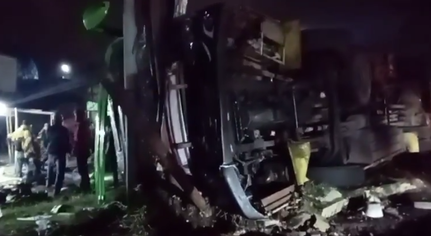 印尼:一巴士行驶中侧翻,致4人死亡