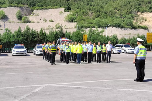 5月14日上午,临汾北公司汾西养护工区、五龙节隧道管理站、路网运行保障三队联合高速交警四支队十一大队、临汾综合执法四大队开展隧道两车追尾引发火灾事故实战演练。